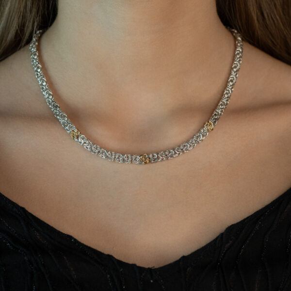 - Šioje kolekcijoje yra ir kaklo papuošalas su auksu ” Aukso žybsnis”
