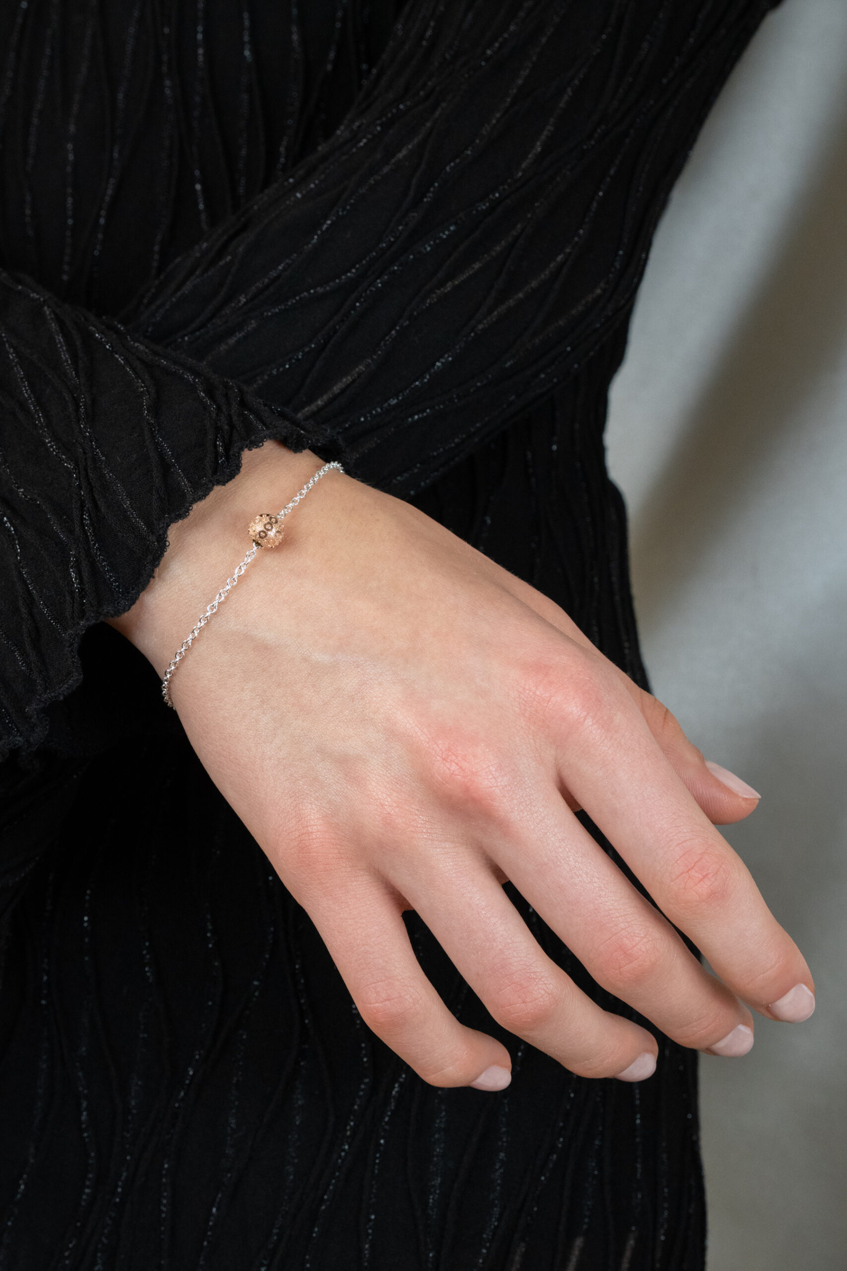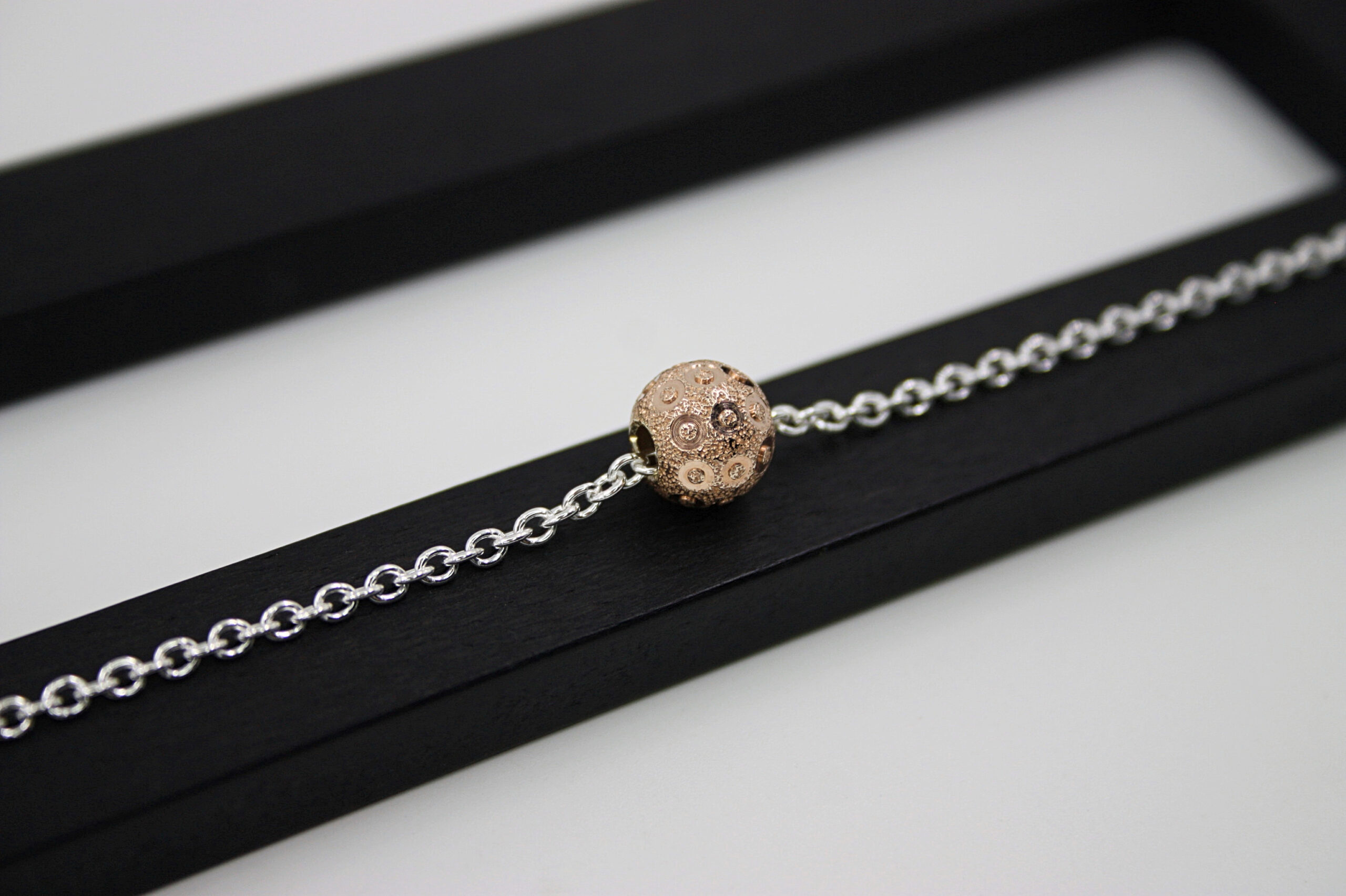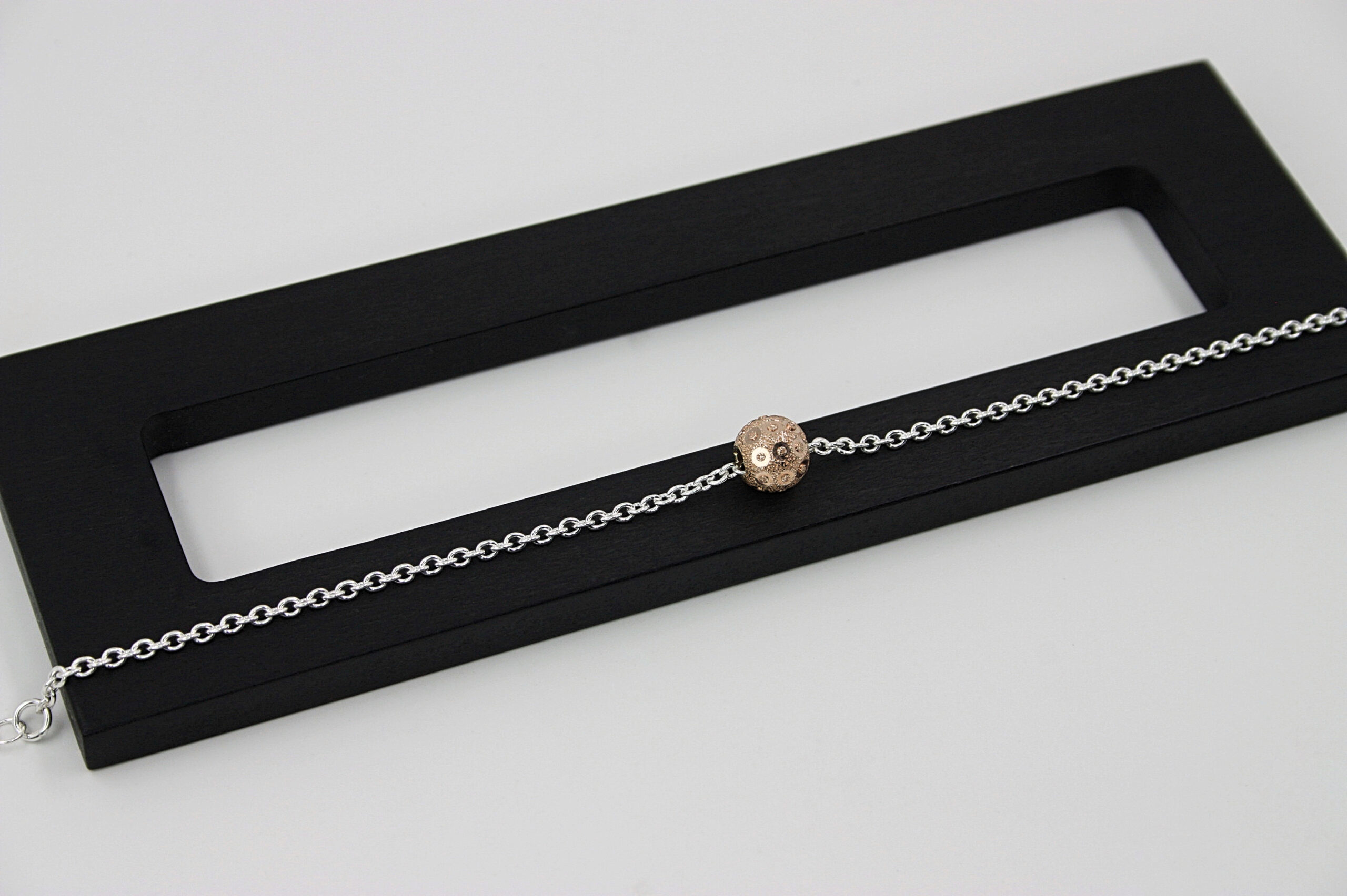 - Rankų darbo apyrankė su aukso spalvos graviruotu sidabro burbuliuku