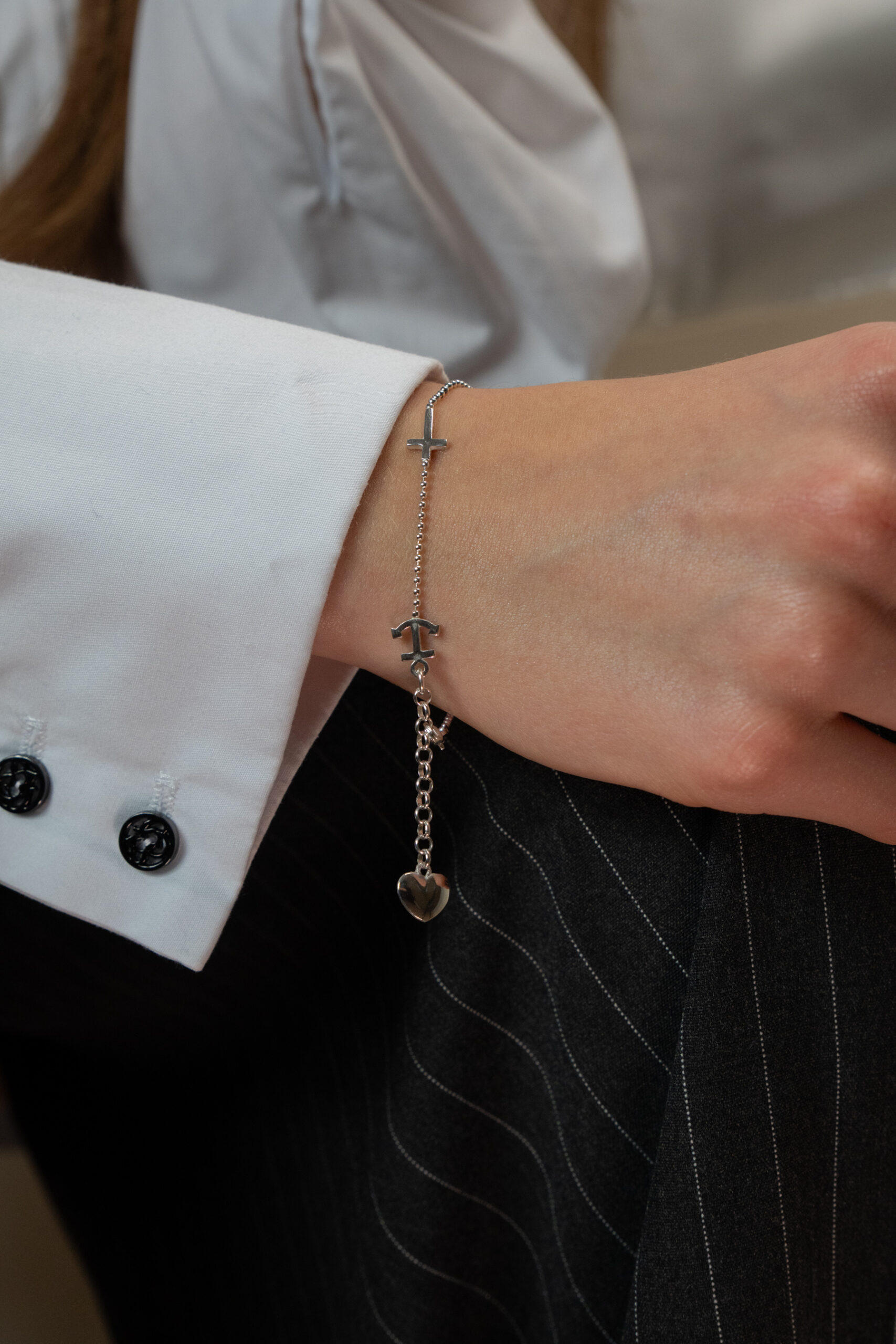 - Rankų darbo apyrankė su trimis pamatiniais simboliais – tikėjimu, viltimi ir meile