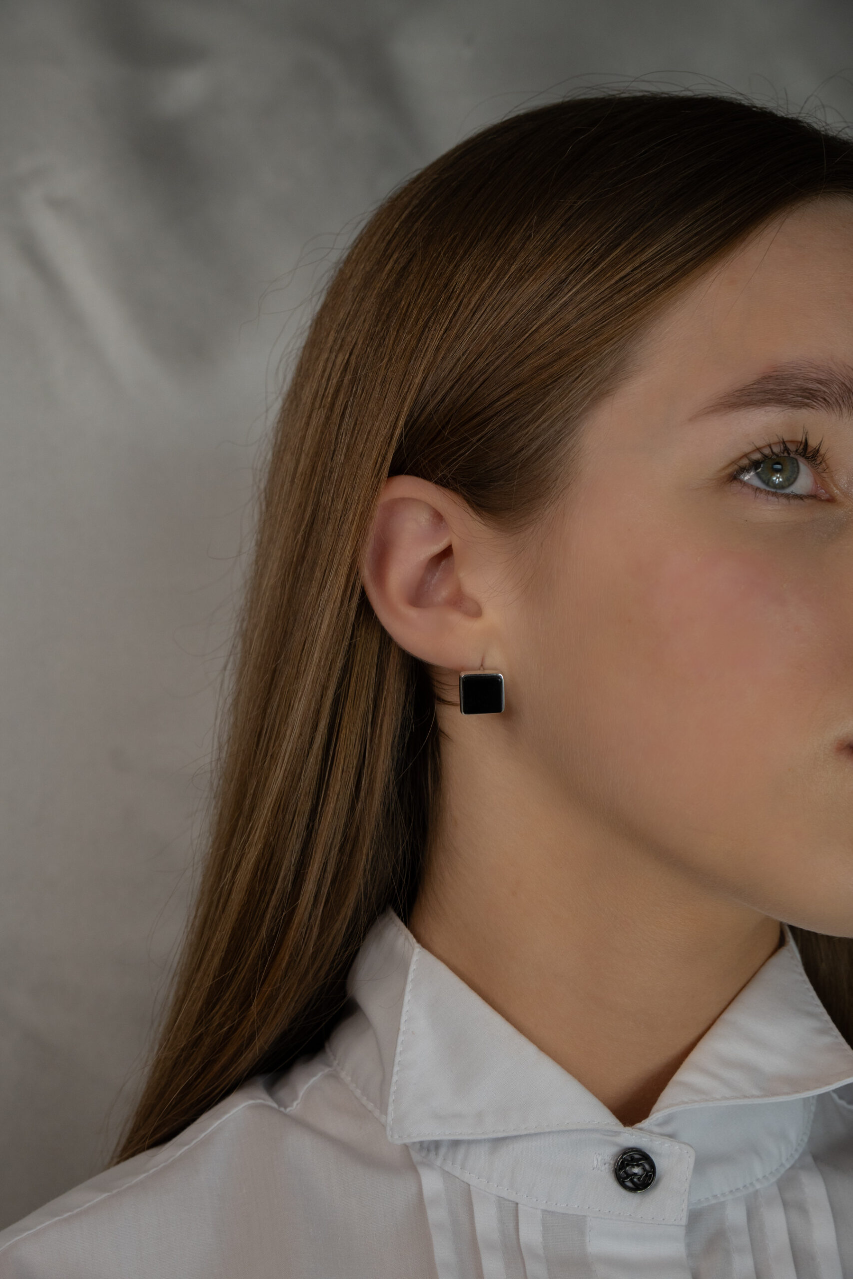 - Rankų darbo sidabro auskarai su juoduoju agatu