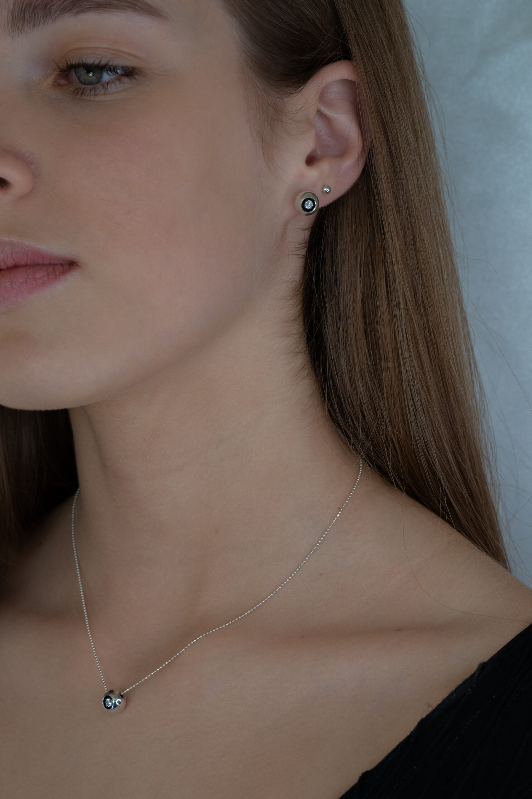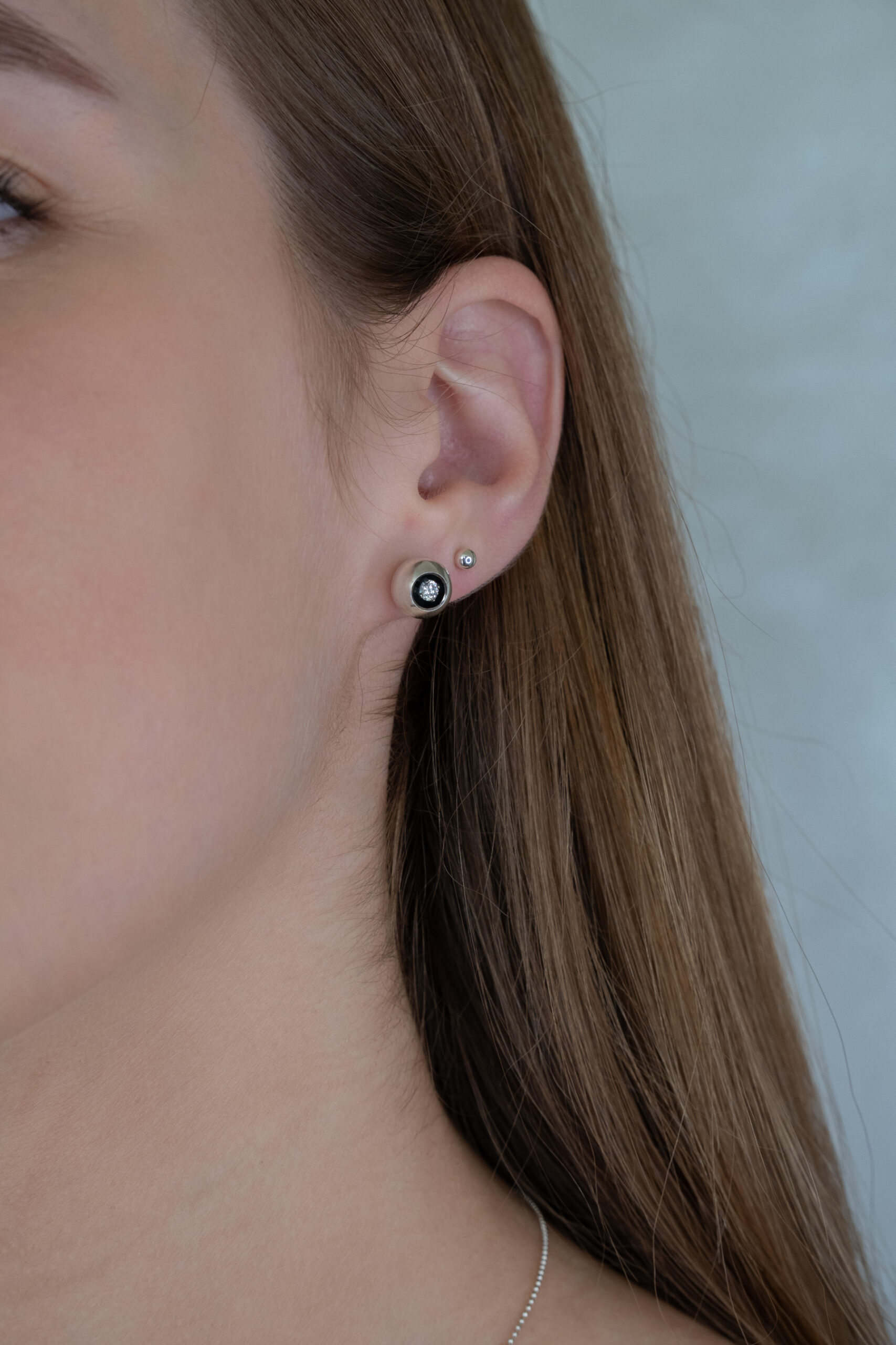- Rankų darbo burbulo formos sidabriniai auskarai su cirkonio akute viduryje