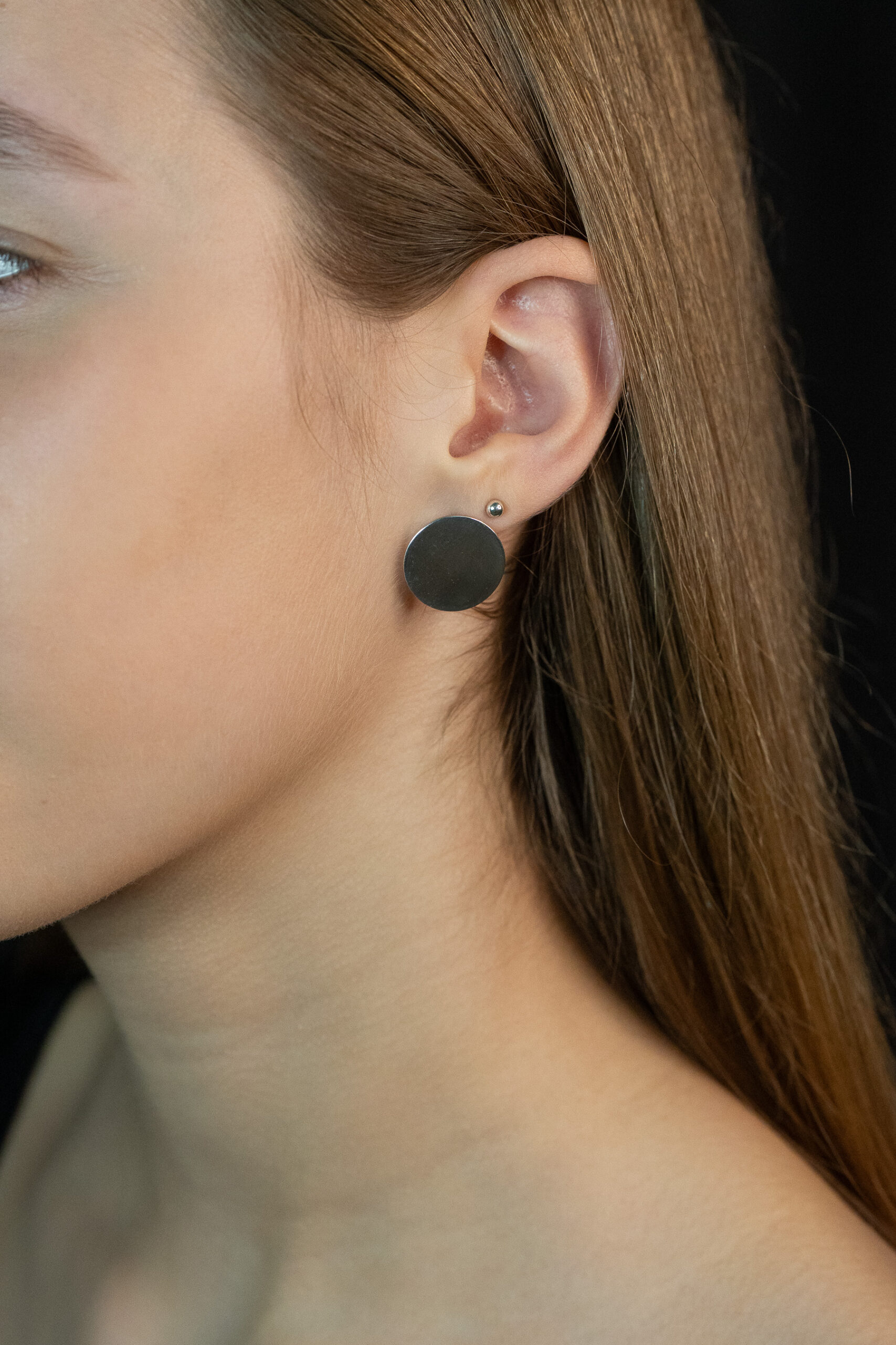- Rankų darbo blizgaus sidabro apvalūs auskarai