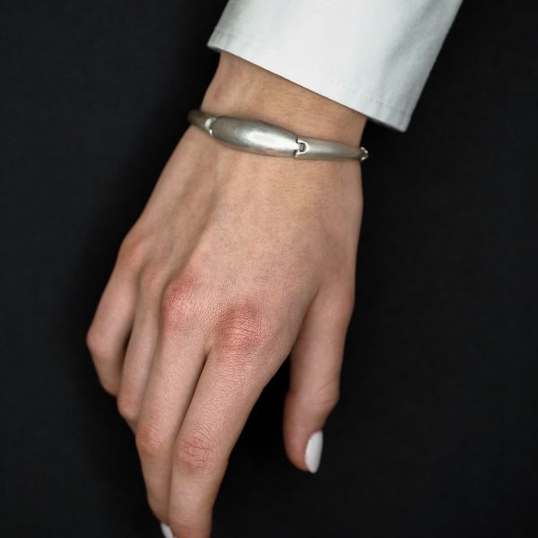 - Rankų darbo tvirti kvadratų formos auskarai (“pagalvėlės”), kurių viena pusė matinė, o kita blizgi