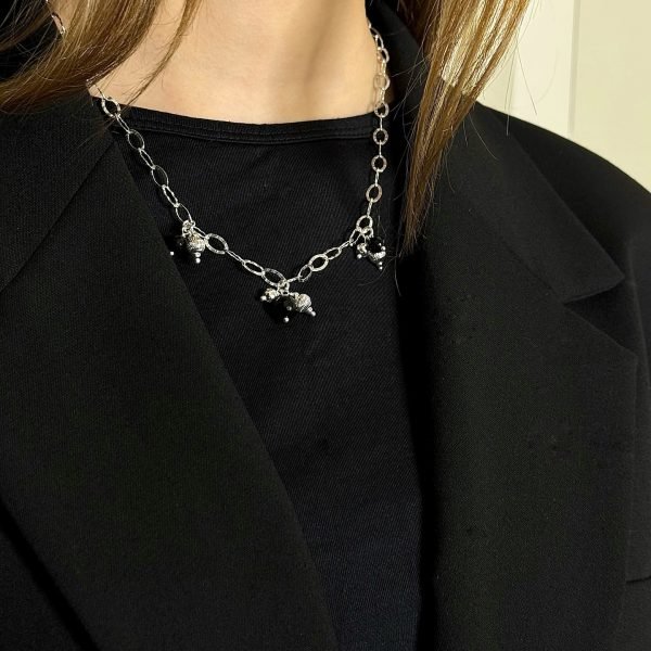 - Rankų darbo sidabriniai kabantys auskarai su onikso ir sidabro burbuliukais