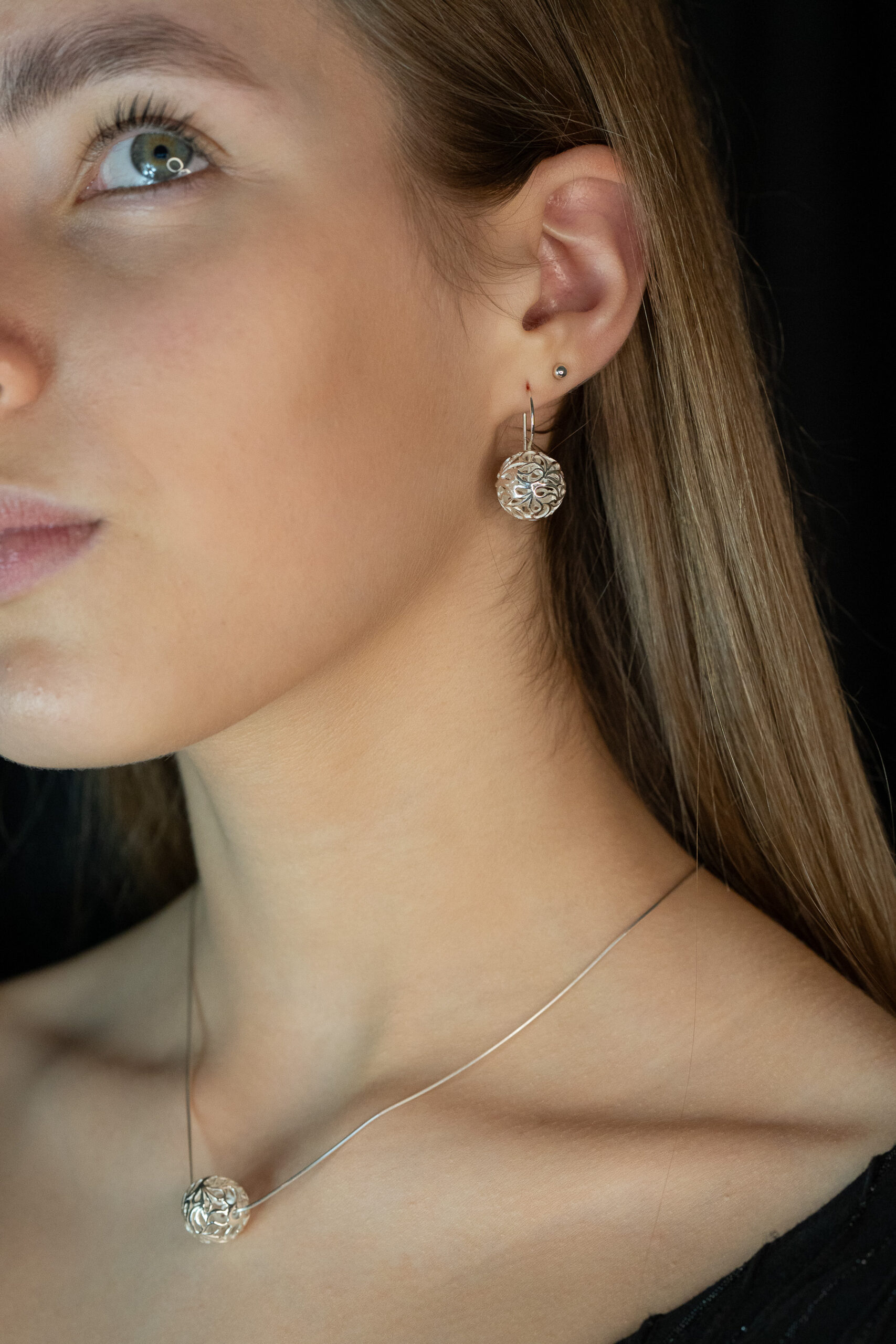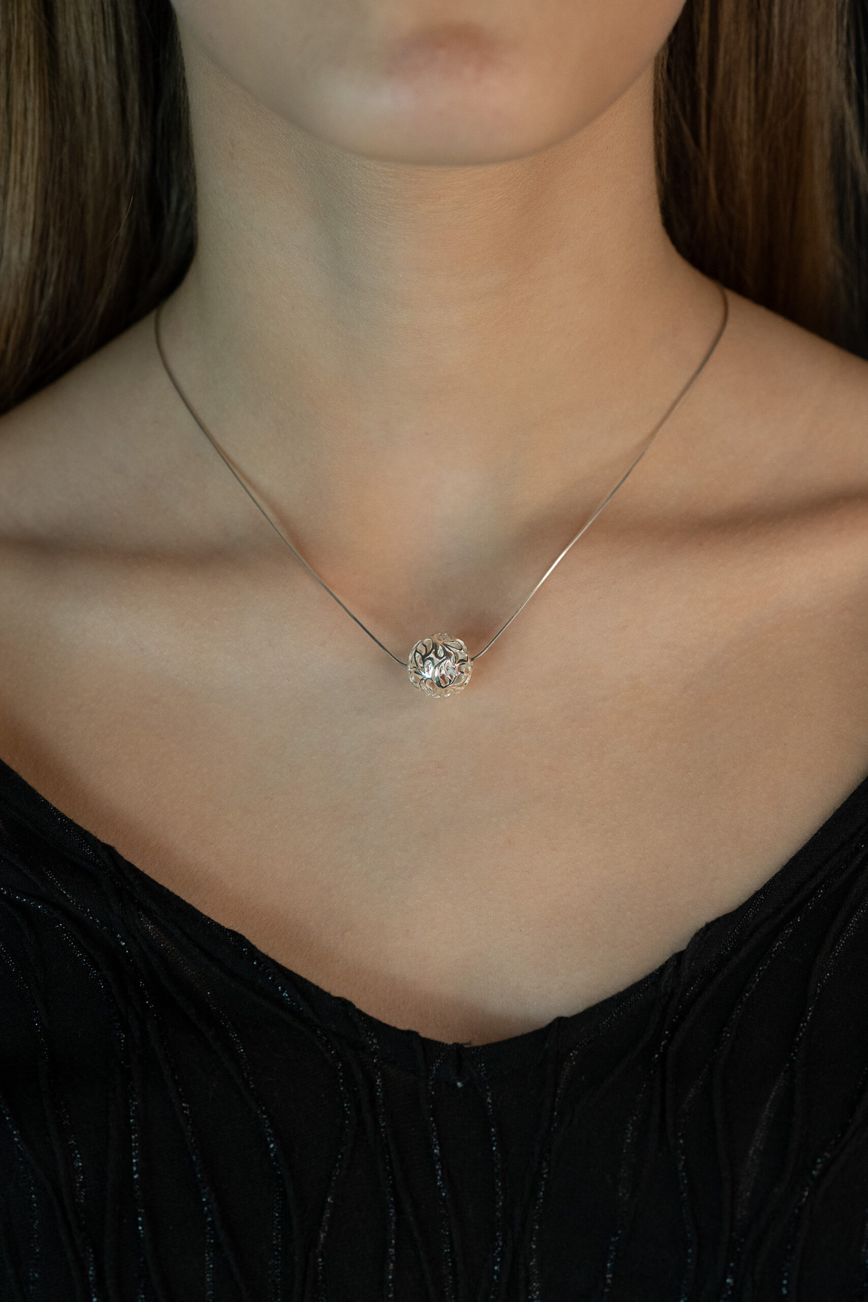 - Rankų darbo kaklo papuošalas su ažūro burbulu ir tvirta grandinėle