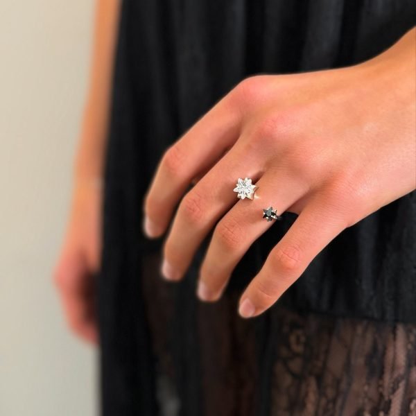 - Rankų darbo žvaigždė sidabre su cirkoniu ir grandinėle “gyvatėle”