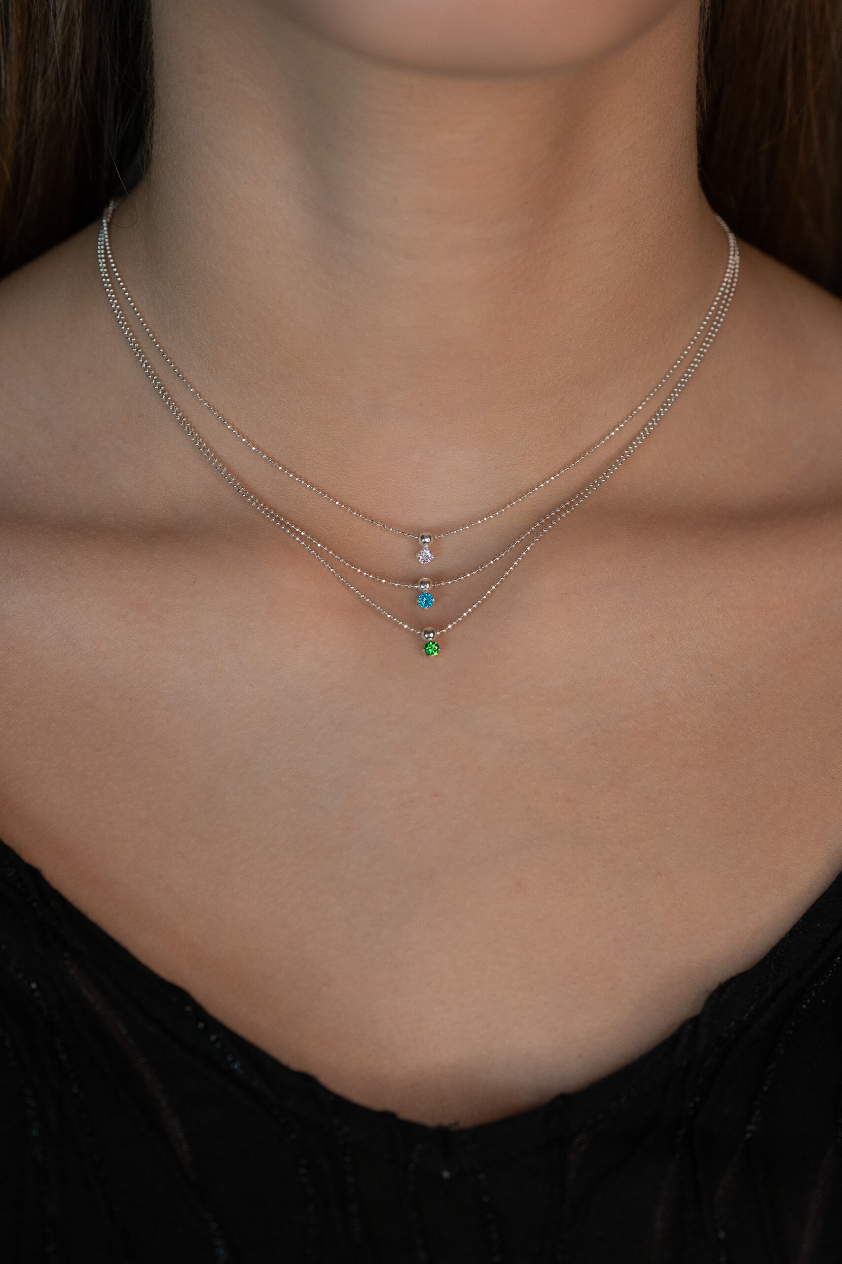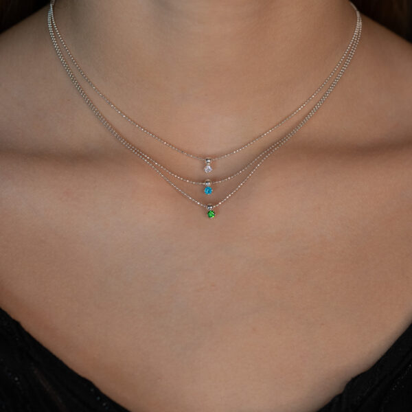 - Smulkių burbuliukų grandinėlė su žydro cirkonio akute