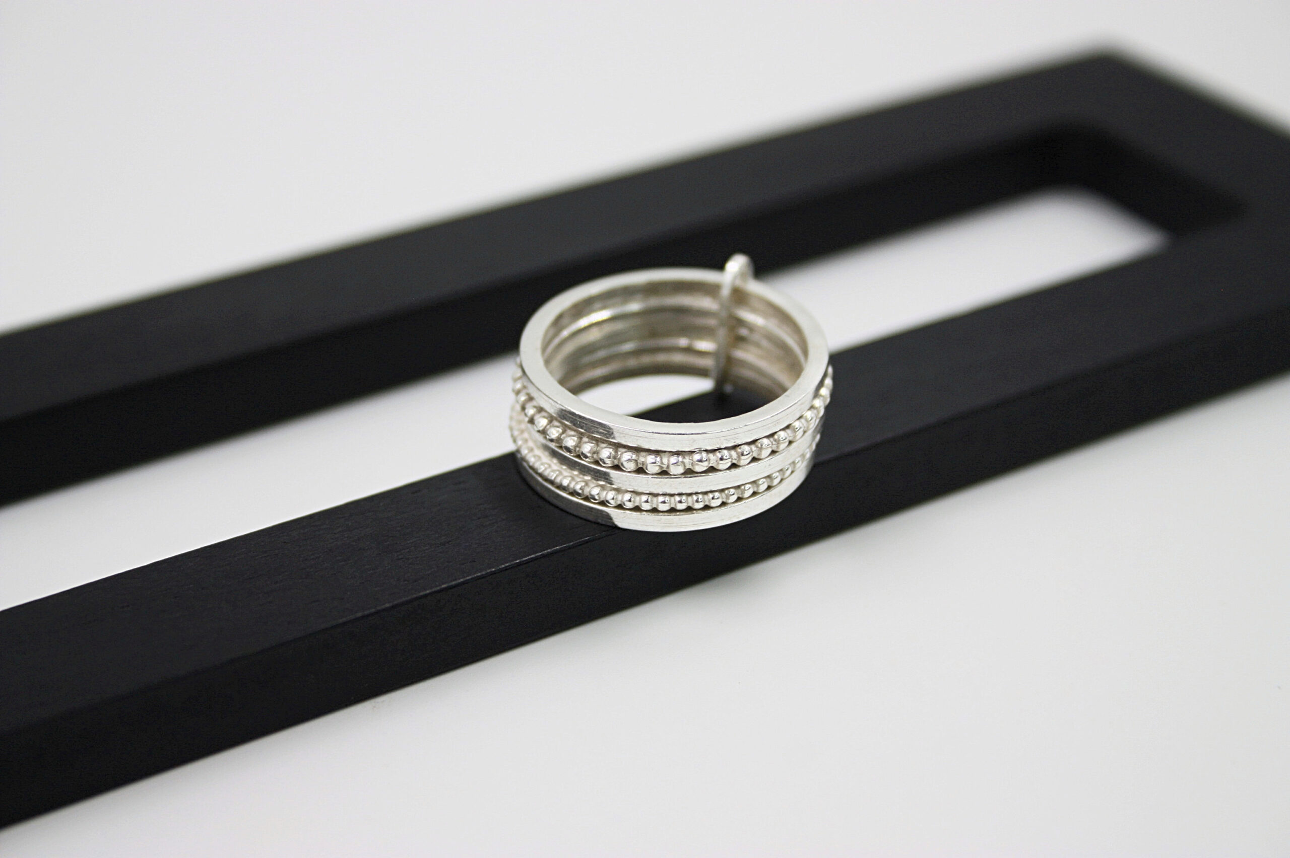 - Rankų darbo sidabrinis žiedas, įkvėptas apskritimo formos, simbolizuoja visumą, harmoniją ir nesibaigiantį judėjimą